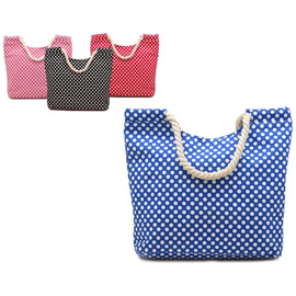 Τσάντα θαλάσσης πουά από καραβόπανο με χερούλια από σχοινί