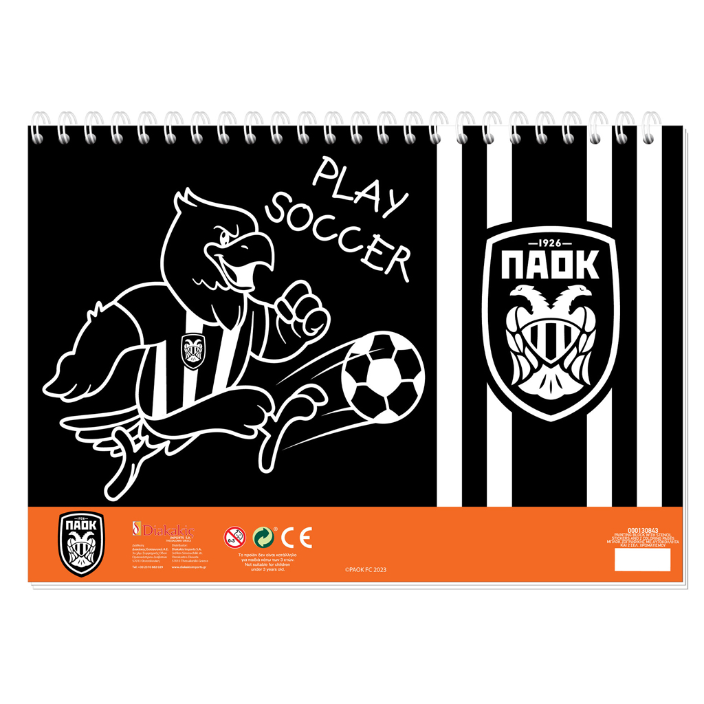Μπλοκ Ζωγραφικής ΠΑΟΚ 23x33cm, 40 Φύλλα, Αυτοκόλλητα-Στενσιλ- 2 Σελίδες Χρωματισμού σε 2 σχέδια