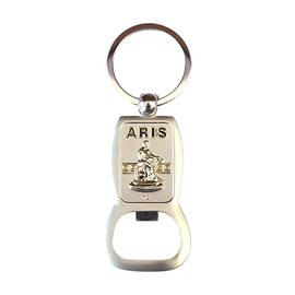 Πρακτικό ανοιχτήρι μπουκαλιών μπρελόκ ARIS FC μεταλλικό ασημί ματ, με το σήμα του Θεού Άρη.