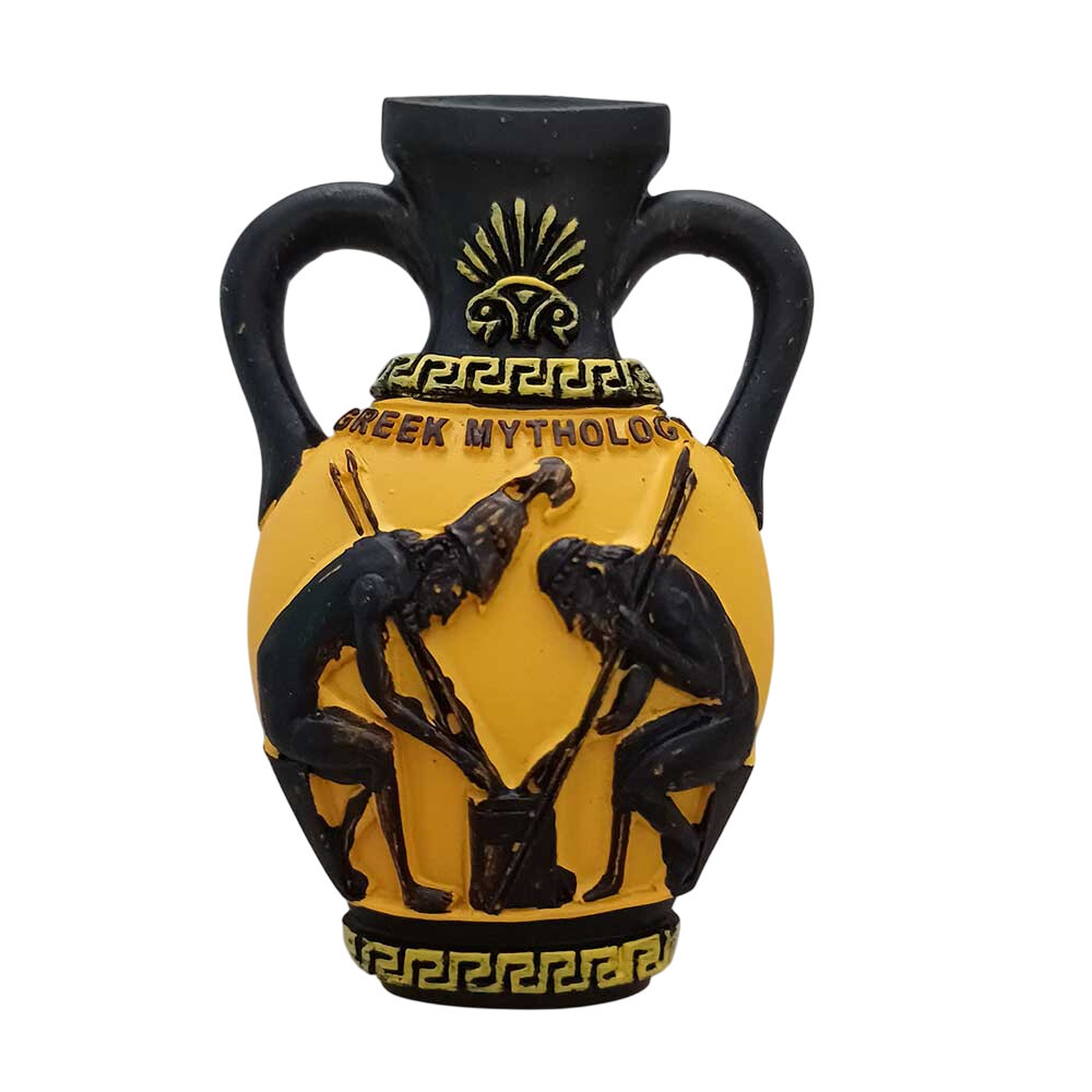 Κεραμικό μαγνητάκι σουβενίρ αμφορέας με παράσταση μελανόμορφου ρυθμού 7x5cm