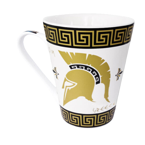 Κούπα κεραμική μαίανδροι με περικεφαλαία και επιγραφή Μολών Λαβέ σε λευκό χρώμα μεγάλη