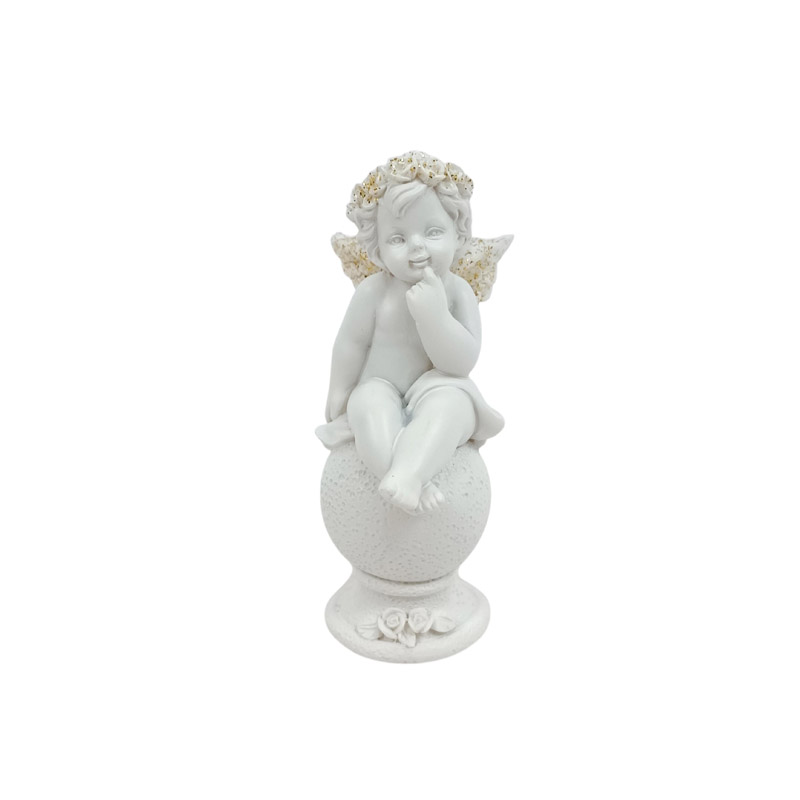 Διακοσμητικό αγγελάκι καθιστό σε βάση σε λευκό χρώμα 8.5x4x3.5cm