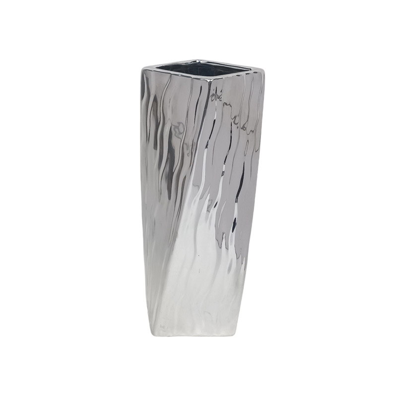 Διακοσμητικό βάζο με κυματιστή υφή και τετράγωνη βάση σε ασημί χρώμα 24.5x10.5x10.5cm