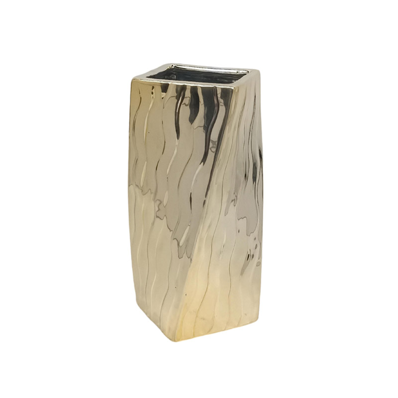 Διακοσμητικό βάζο με κυματιστή υφή και τετράγωνη βάση σε χρυσό χρώμα 20x10x10cm
