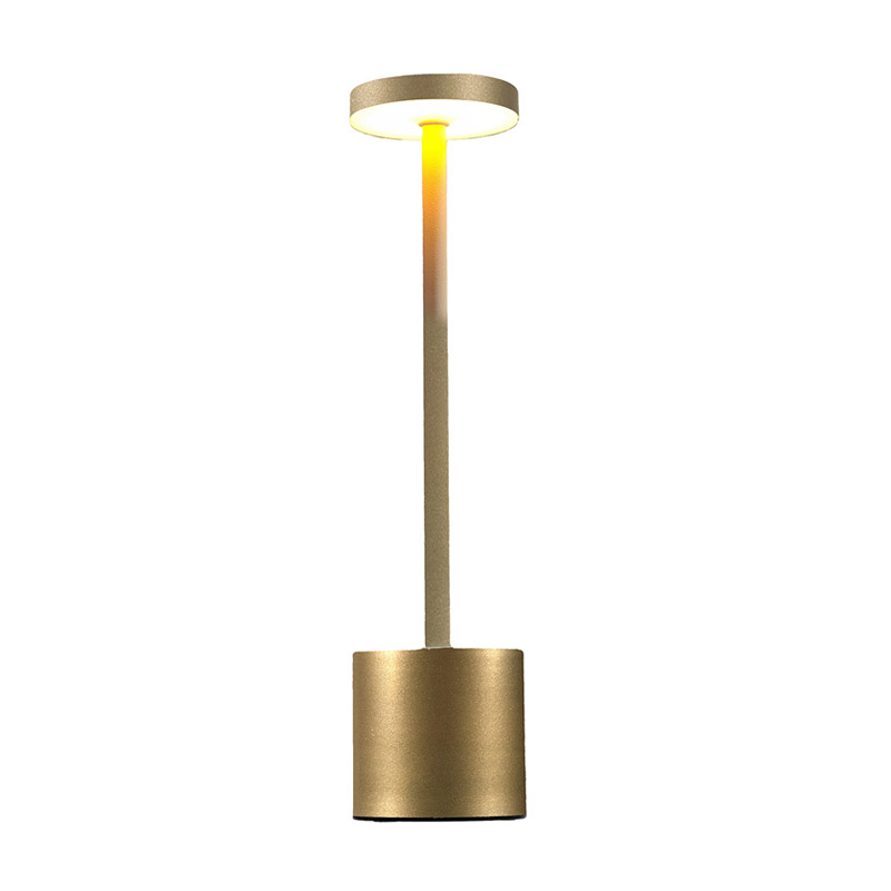 Επιτραπέζιο πορτατίφ επαναφορτιζόμενο με χρυσή βάση μετάλλου και λευκό καπέλο με 3 διαβαθμίσεις λευκού 30x13x13cm