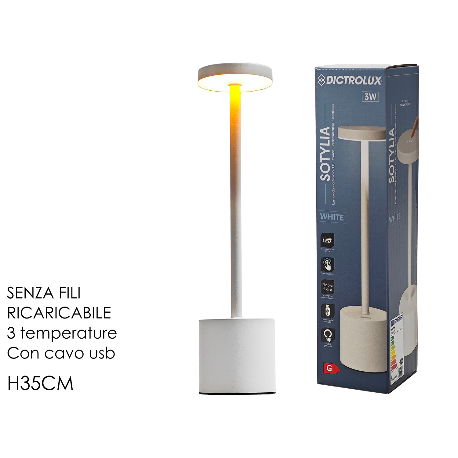 Φωτιστικό επιτραπέζιο αφής με λάμπα led, 3 εντάεις & usb καλώδιο σε λευκό χρώμα 35cm