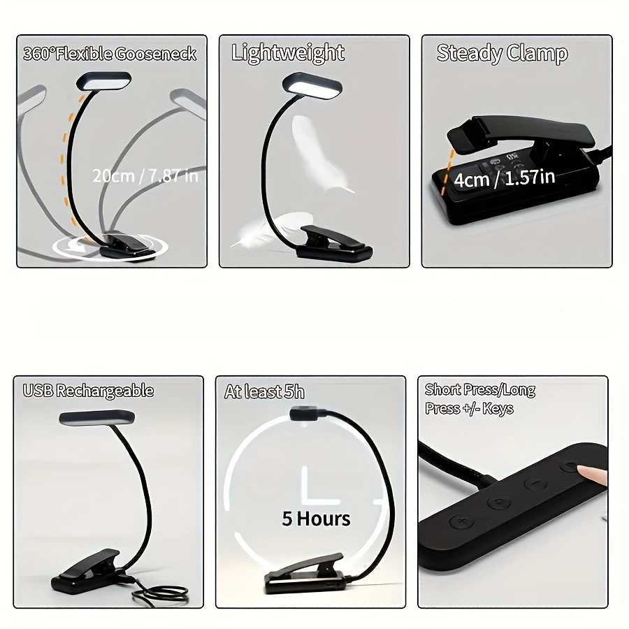 Ρυθμιζόμενο φως ανάγνωσης LED με προστασία ματιών, περιστρεφόμενη τριπλή κεφαλή 360°, ρυθμιζόμενο φωτιστικό γραφείου, επαναφορτιζόμενο πλαστικό φως βιβλίου, εσωτερική χρήση, τροφοδοσία μπαταρίας για ηλικίες 14+