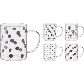 Κούπα γυάλινη διάφανη με σχέδια σε 4 χρώματα 420ml