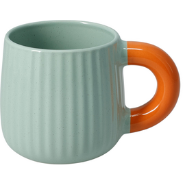 Κούπα κεραμική ανάγλυφη ριγέ σε γαλάζιο χρώμα με πορτοκαλί λαβή 395ml
