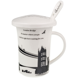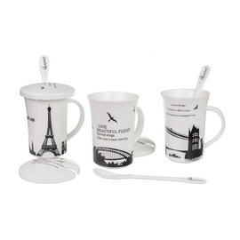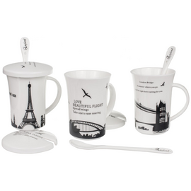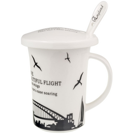 Ceramic mug with lid and spoon Messages
