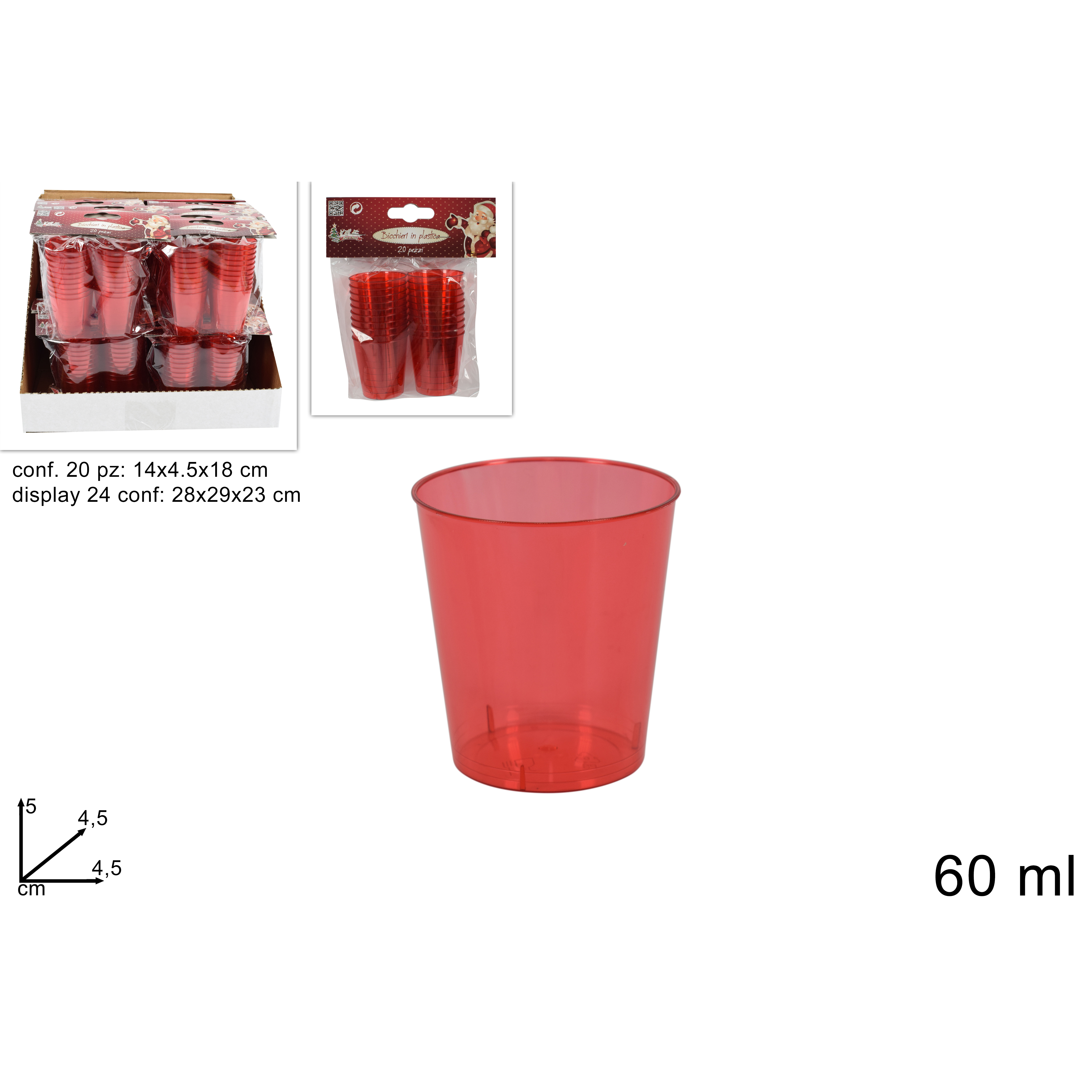 Πλαστικό ποτήρι σφηνάκι σετ 20τμχ σε κόκκινο χρώμα 60ml