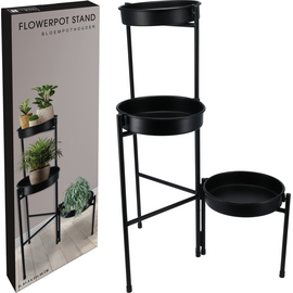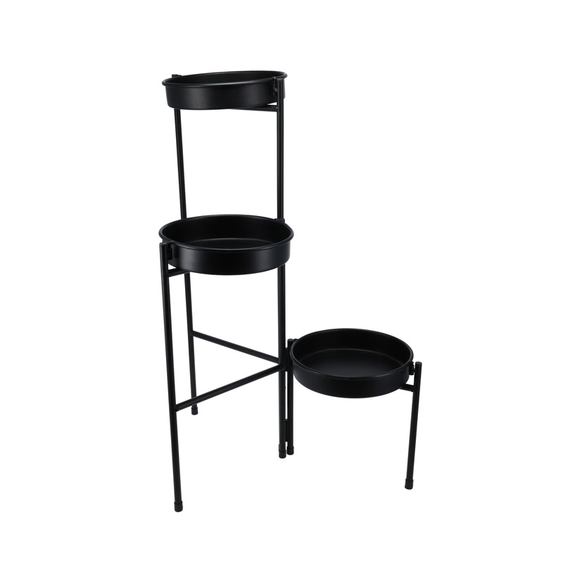 Βάση λουλουδιών μεταλλική με 3 θέσεις για γλάστρα σε μαύρο χρώμα 46x32x61.5cm
