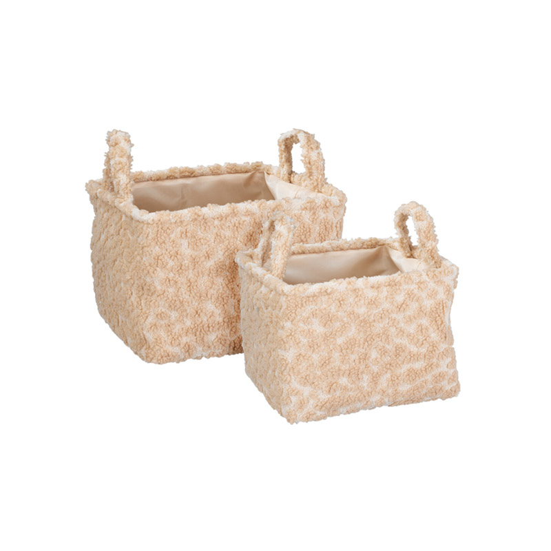 Καλάθι λούτρινο μεσαίο μέγεθος με χερούλια σε εκρού χρώμα 24x24x18cm