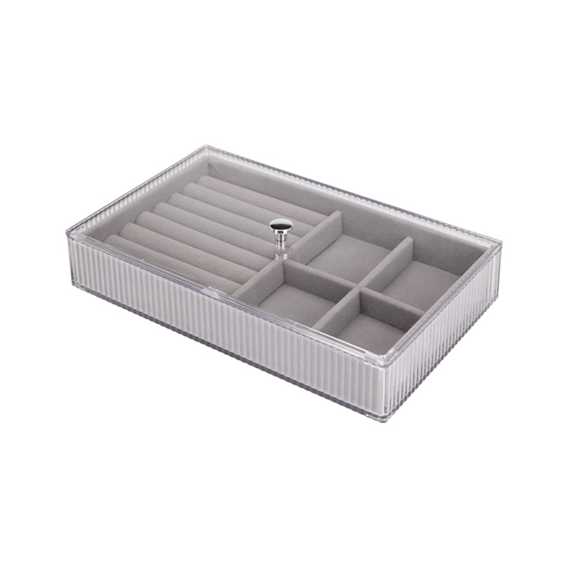 Κοσμηματοθήκη σε γκρι χρώμα με διάφανο καπάκι 23.6x14.5x5cm