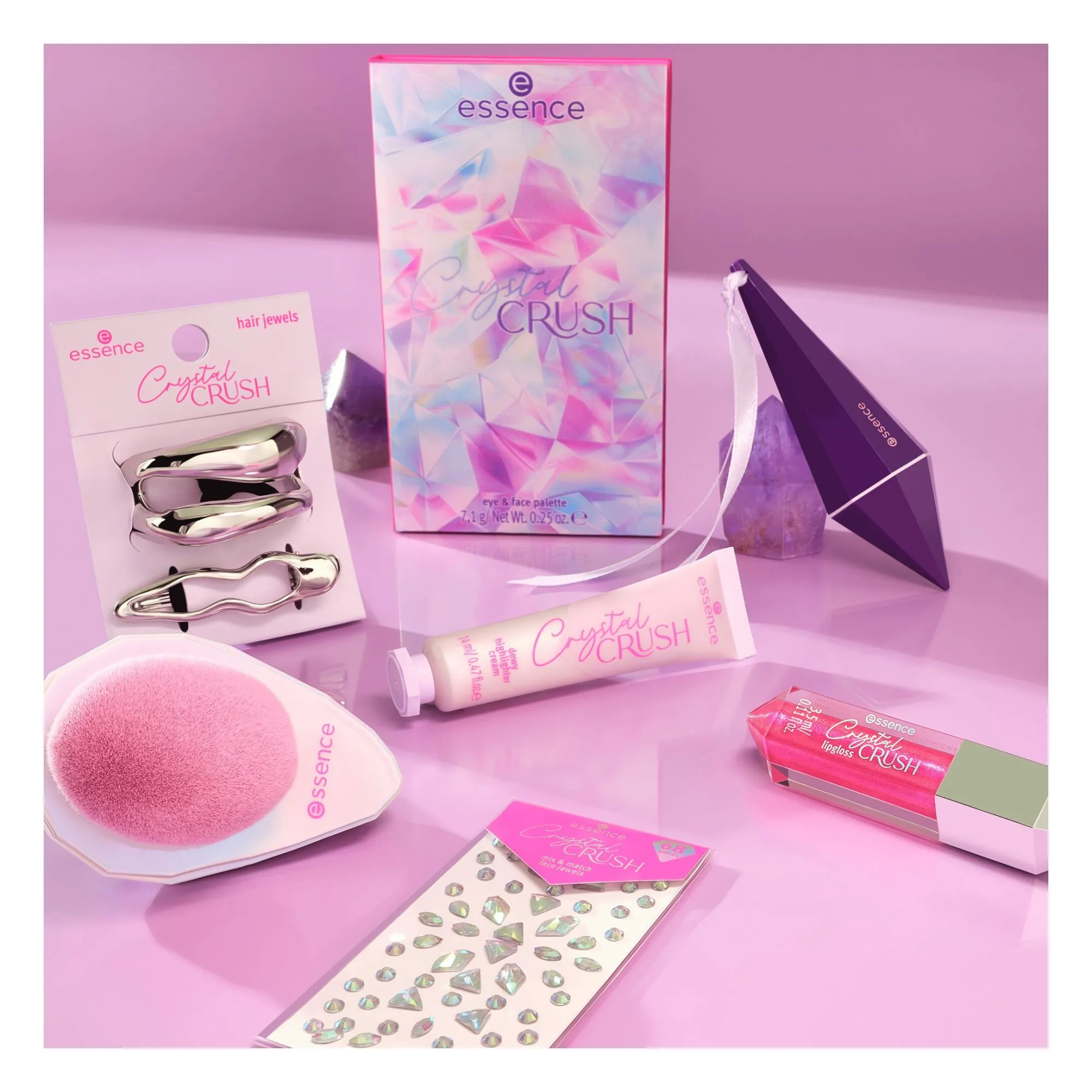 Για μια κρυστάλλινη λάμψη στην επιδερμίδα σας, δοκιμάστε το highlighter dewy cream Crystal Crush στην απόχρωση 01 Diamond Dew από την essence. Η κρεμώδης, μεταξένια απαλή υφή της αναμειγνύεται αβίαστα και λιώνει άψογα στο δέρμα. Χάρη στις χρωστικές που αντανακλούν το φως και την ολογραφική λάμψη, η φυσική λάμψη του δέρματος εντείνεται όμορφα. Είτε εφαρμόζεται στα ζυγωματικά, στο κόκκαλο του φρυδιού είτε στη γέφυρα της μύτης, αιχμαλωτίζει άψογα το φως. Το αποτέλεσμα είναι ένα φρέσκο, λαμπερό φινίρισμα.