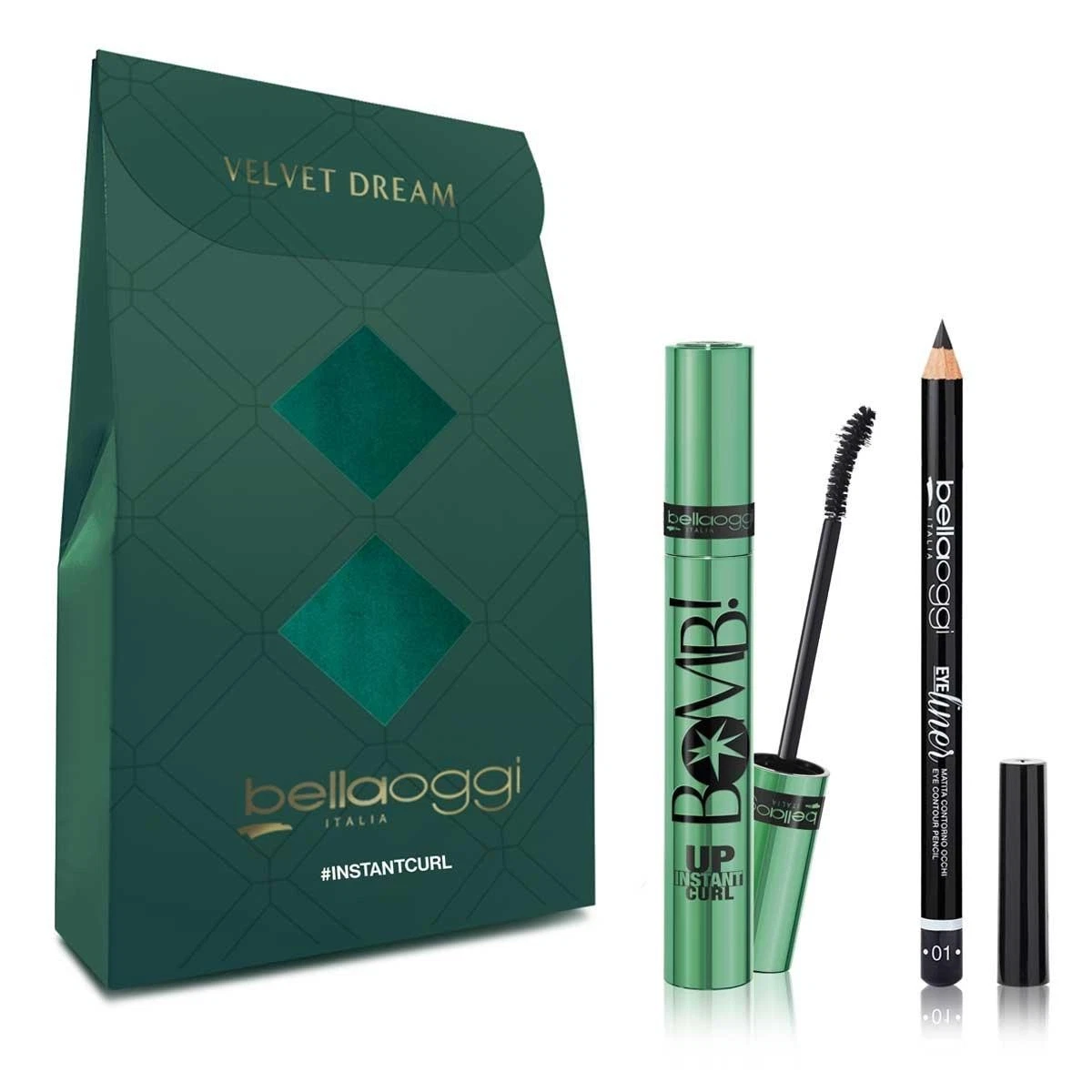 Bella Oggi Mini Kit Instant Curl Mascara Volume Eyelashes Perfect gift. The Bella Oggi Instant Curl kit is the perfect ally for those who want an intense and defined look in just a few gestures. The mascara gives an immediate curling effect, lengthening the lashes and making them voluminous without weighing them down, while its long-lasting formula ensures a flawless look all day long. The compact packaging with attention to detail also makes it ideal as a beauty gift or to always carry in your bag for quick touch-ups. A small box that contains the quality and elegance of Bella Oggi professional make-up, perfect for daily make-up or for special occasions.