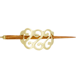 Μπαρέτα μαλλιών από μέταλλο με ξύλινο ραβδί με σχέδιο τριπλό άπειρο σε χρώμα χρυσό