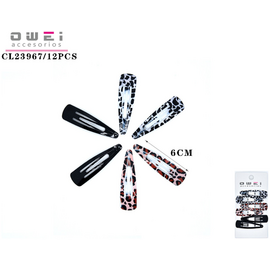Set of 6 hair clips with a length of 6 cm with leopard patterns and in black color
