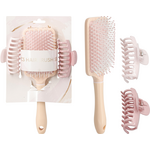 Σετ 3 τεμάχια βούρτσα μαλλιών και δύο κλάμερ σε ροζ χρώμα