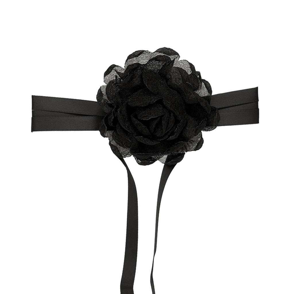 Κολιέ τσόκερ με λουλούδι, διαμέτρου 8cm, σε χρώμα μαύρο.