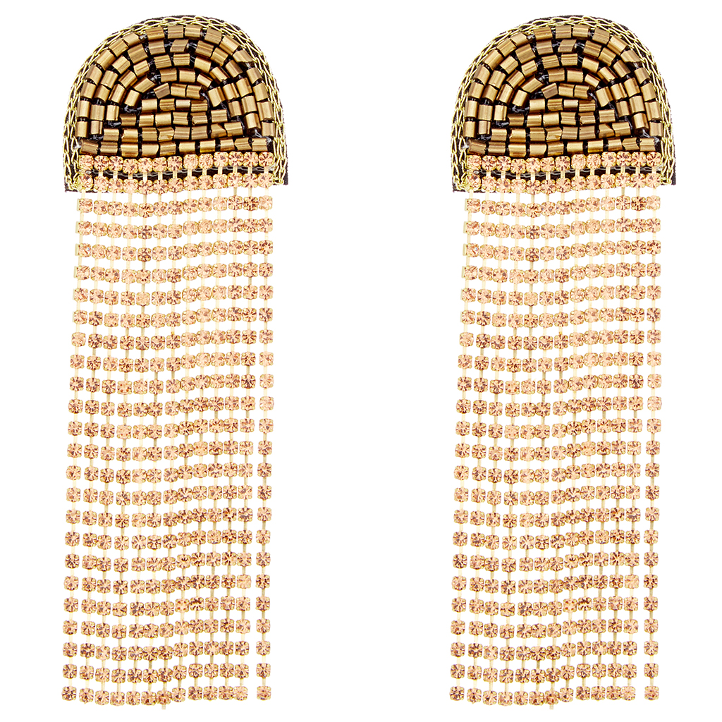 Σκουλαρίκια χειροποίητα κρεμαστά πολύσειρα από χάνδρες και στρας,μήκους10cm,σε χρώμα χρυσό