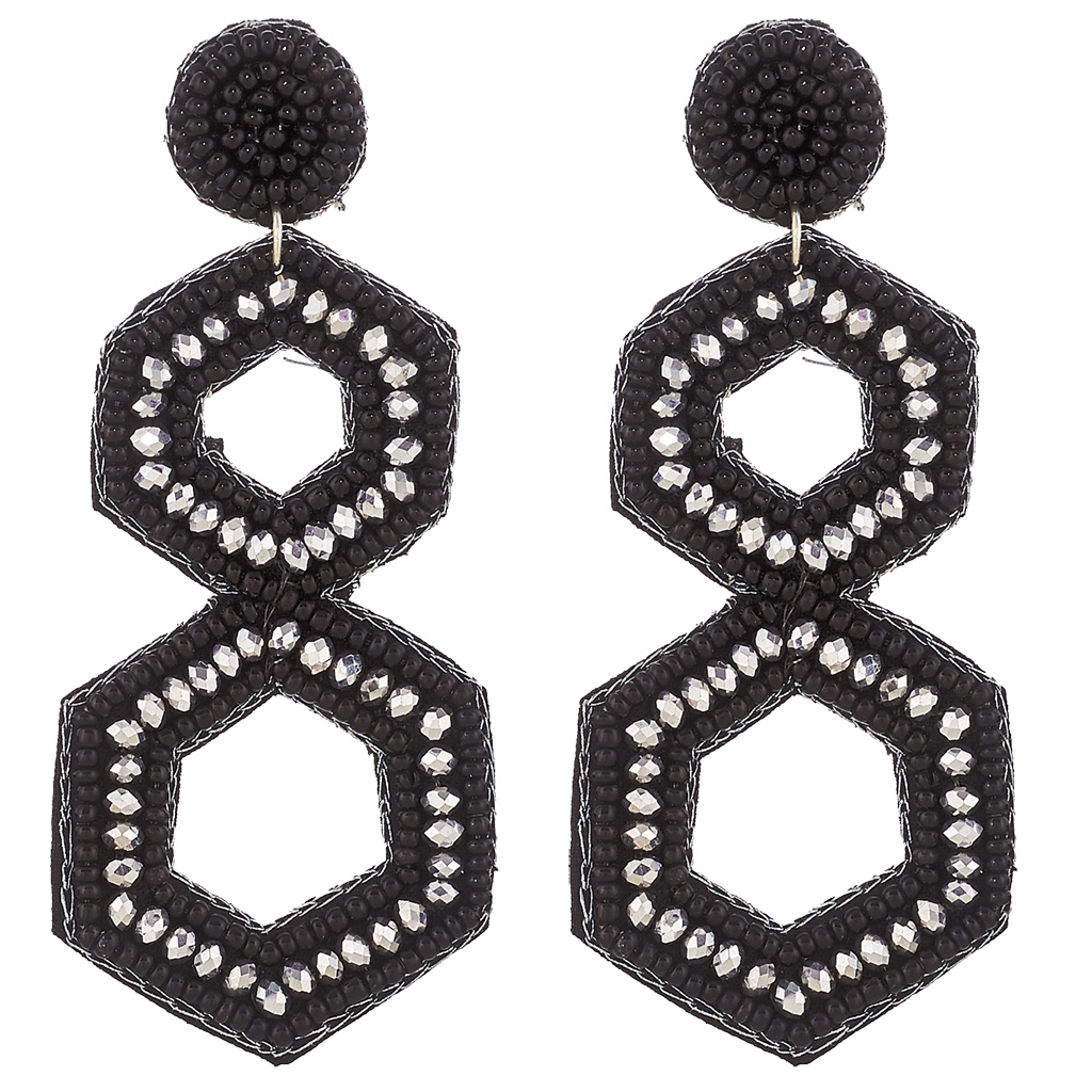 Σκουλαρίκια χειροποίητα πολυγωνικά από χάνδρες και πέτρες μήκους 8cm σε χρώμα μαύρο