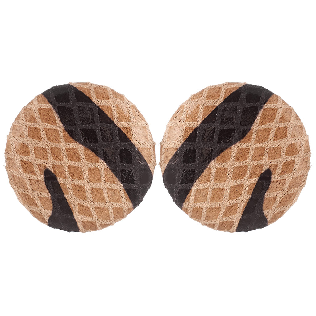 Σκουλαρίκια κλίπ στρογγυλά με ανάγλυφο σχέδιο από ύφασμα, μήκους 3cm, σε χρώμα μαύρο/μπεζ