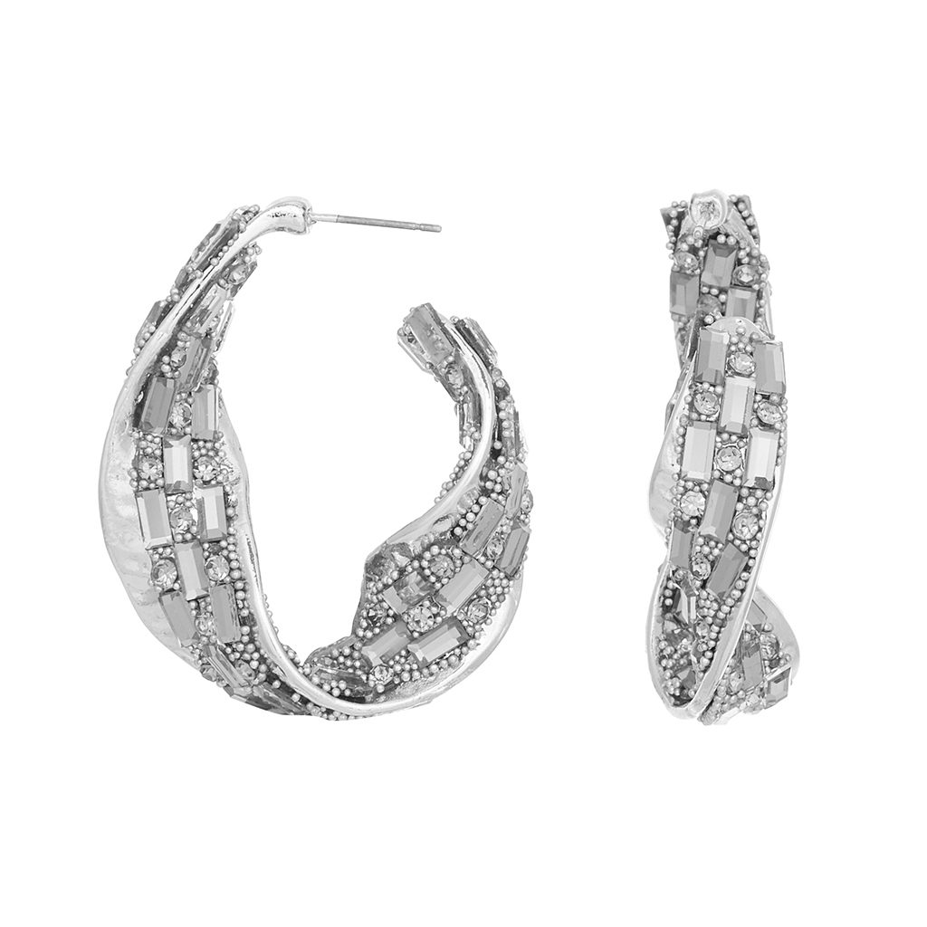 Σκουλαρίκια κρίκοι μεταλλικοί στριφτοί από πέτρες μήκους 4.5cm σε χρώμα ασημί