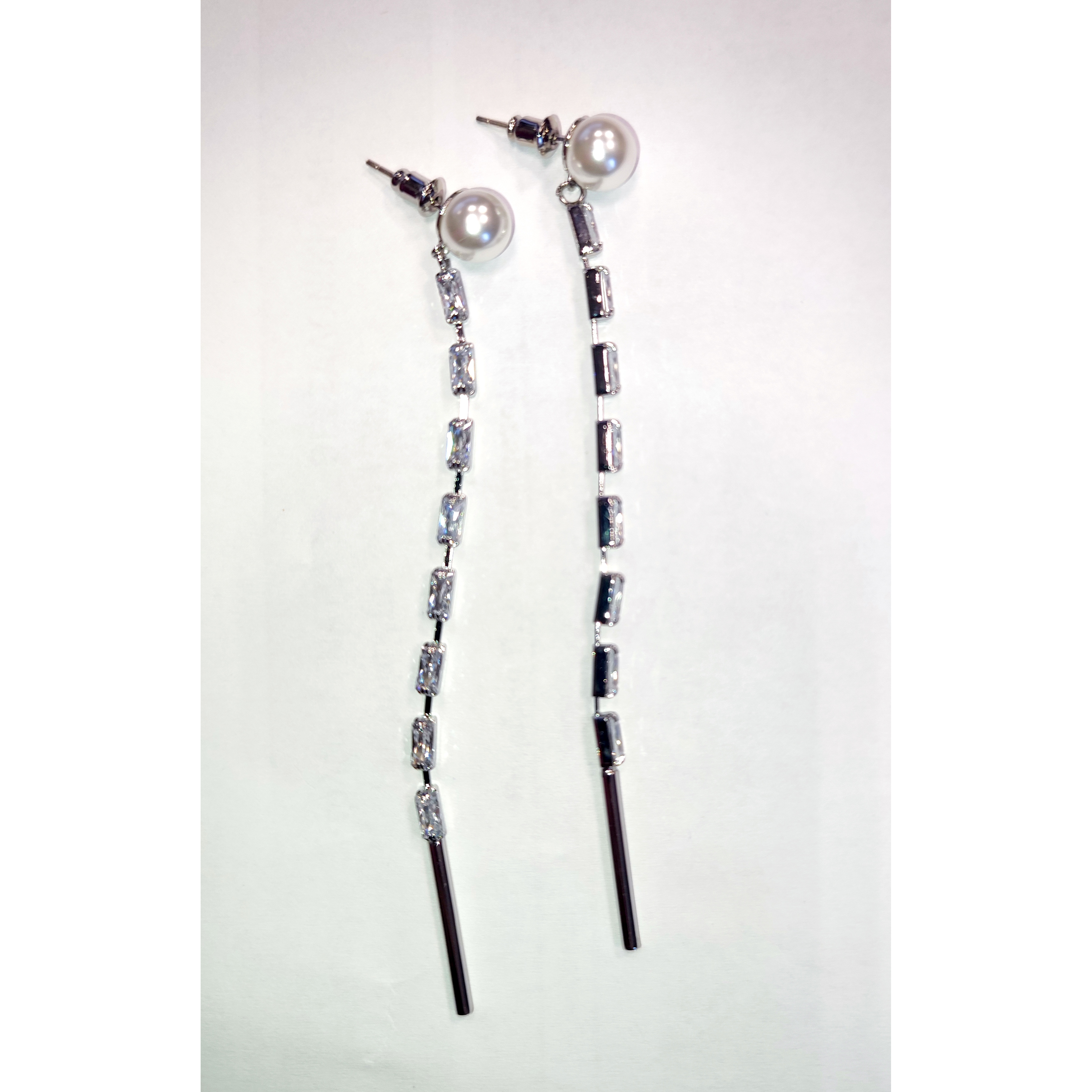 Σκουλαρίκια με μία σειρά από στράς & πέρλα ,μήκους 9cm,σε χρώμα ασημί