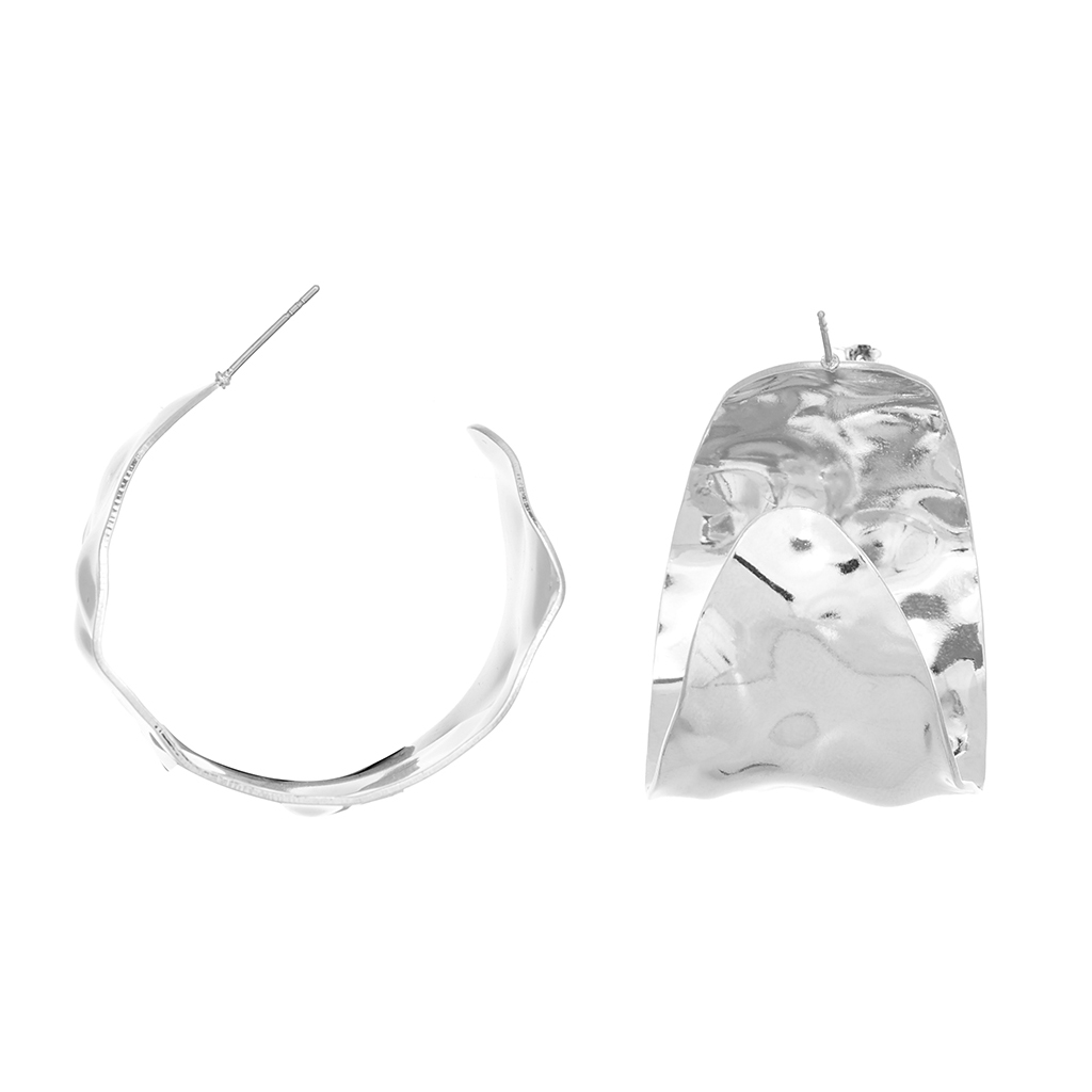 Σκουλαρίκια μεταλλικά καρφωτά φαρδύς κρίκος,μήκους 3cm,σε χρώμα ασημί.