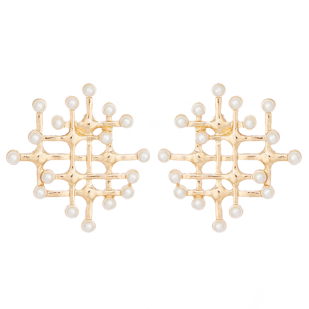 Σκουλαρίκια μεταλλικά καρφωτά με διάσπαρτες πέρλες,μήκους 4cm,σε χρώμα χρυσό