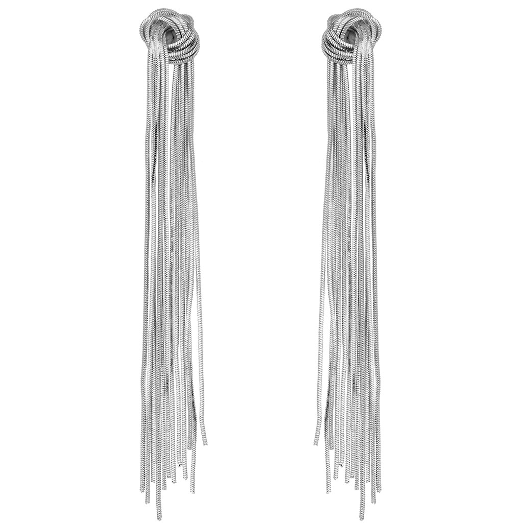 Σκουλαρίκια μεταλλικά καρφωτά πολύσειρα με κόμπο, μήκους 11cm, σε χρώμα ασημί