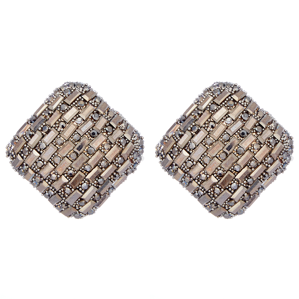 Σκουλαρίκια μεταλλικά καρφωτά τετράγωνα με κρύσταλλα,μήκους 3cm,σε χρώμα γκρί