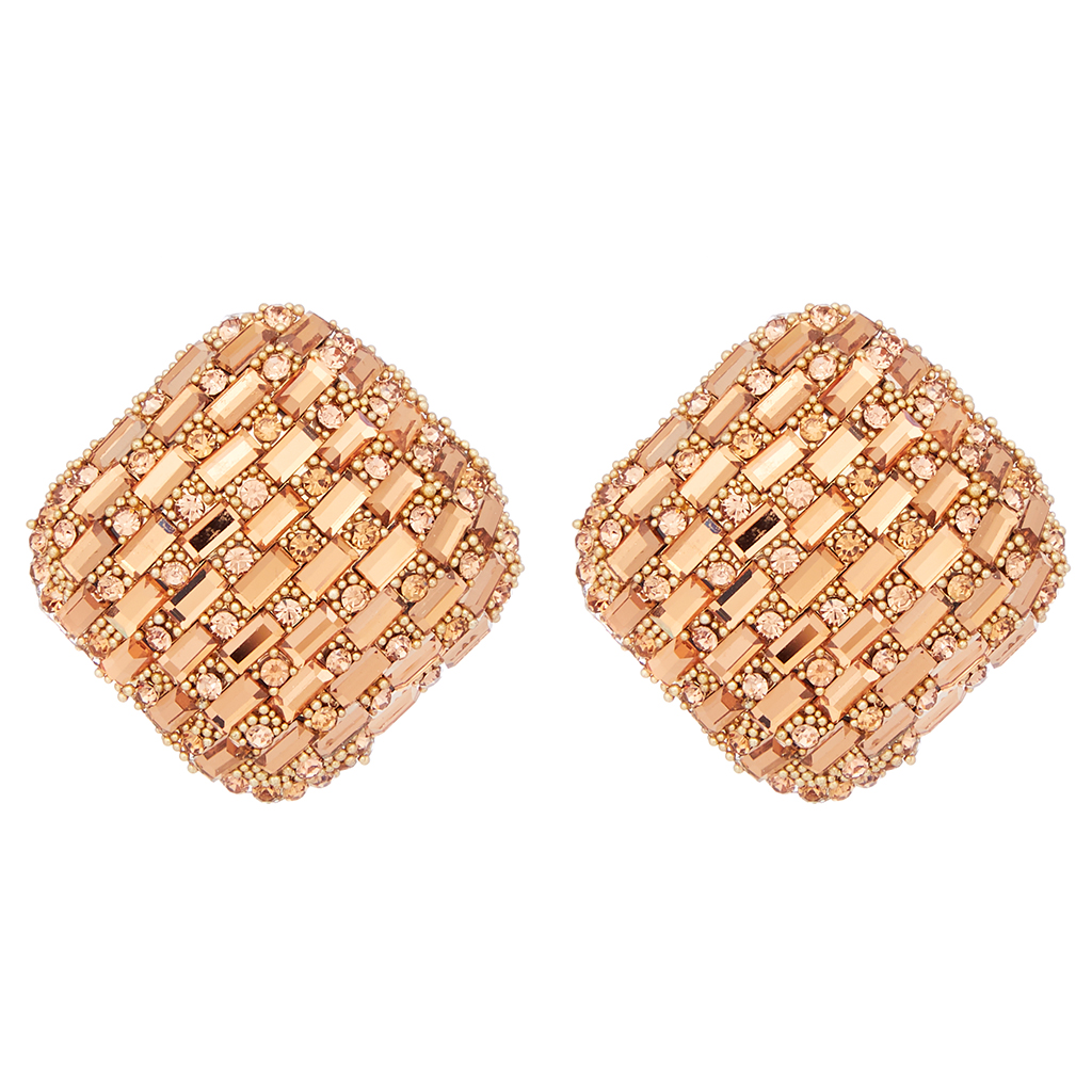 Σκουλαρίκια μεταλλικά καρφωτά τετράγωνα με κρύσταλλα,μήκους 3cm,σε χρώμα χρυσό