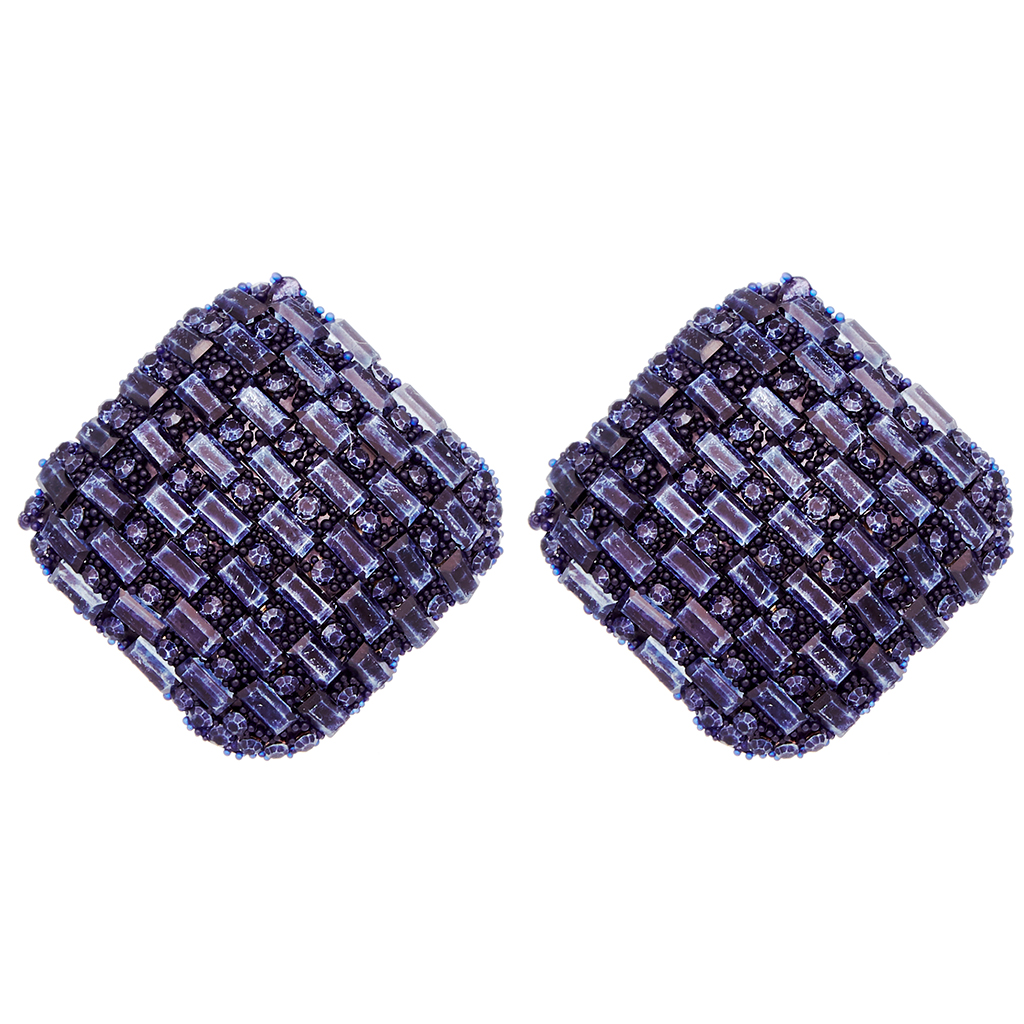 Σκουλαρίκια μεταλλικά καρφωτά τετράγωνα με κρύσταλλα,μήκους 3cm,σε χρώμα μπλέ
