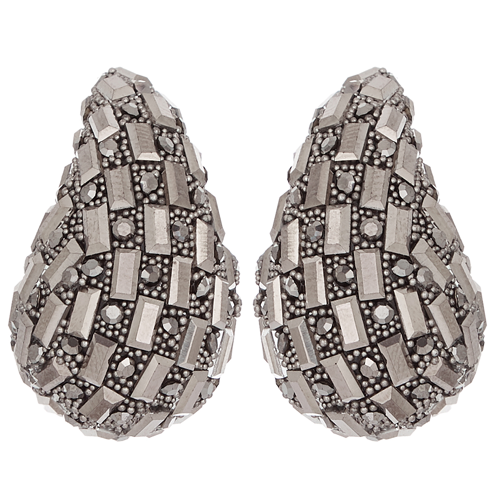 Σκουλαρίκια μεταλλικά με πέτρες σε σχέδιο σταγόνα μήκους 3,5cm σε χρώμα ανθρακί