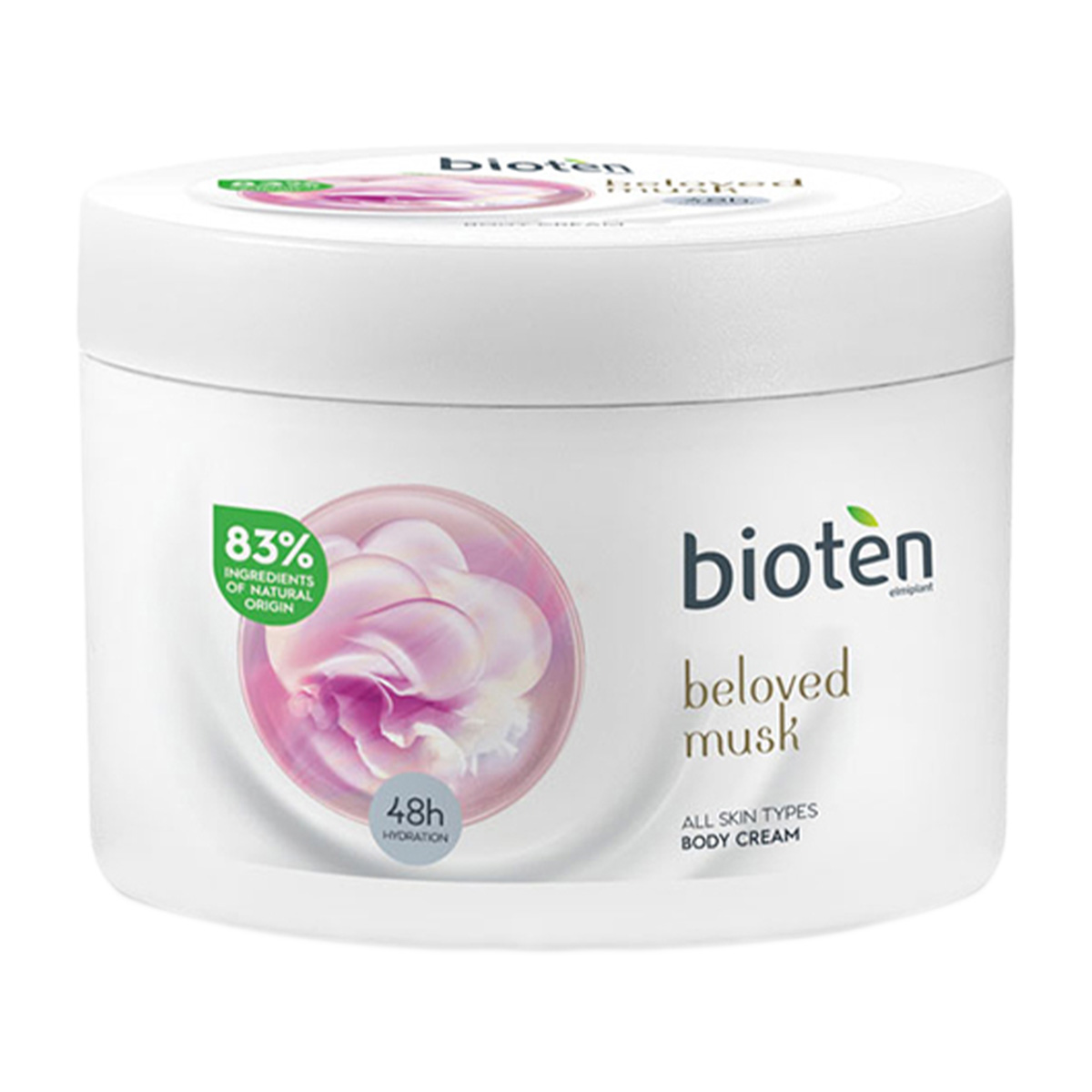 Ανακαλύψτε μια ξεχωριστή εμπειρία περιποίησης με το γαλάκτωμα σώματος bioten beloved musk με το ξεχωριστό και αγαπημένο άρωμα white musk! Οι νέες bioten body creams αποτελούνται από μια μοναδική σύνθεση με 83% συστατικά φυσικής προέλευσης και ενυδάτωση που διαρκεί έως και 48 ώρες*. H 100% φυσική βανίλια βοηθά στην διατήρηση της απαλότητας, την ενυδάτωση και τόνωση του δέρματος, αποτρέποντας την αφυδάτωσή του. Δερματολογικά ελεγμένο *Κλινικός έλεγχος με εργαστηριακό όργανο υπό την επίβλεψη δερματολόγου, 10 γυναίκες.