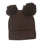Σκούφος καφέ πλεκτός με δύο φούντες και γούνινη επένδυση