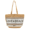 Τσάντα ώμου xειροποίητη από γιούτα διακοσμημένη με κοxύλια και μεταλλικές xάνδρες 'LOVE BEACH' 51x35x31cm σε xρώμα xρυσό